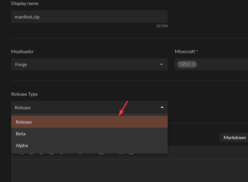 - Supported Version: Pick which versions of the game your project is compatible with. You can choose multiple versions.