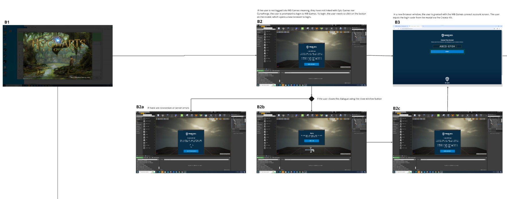 If the user is not logged into WB Games, i.e. they have not linked their WB Games account with their Epic Games or CurseForge accounts, the user is prompted to login to WB Games.