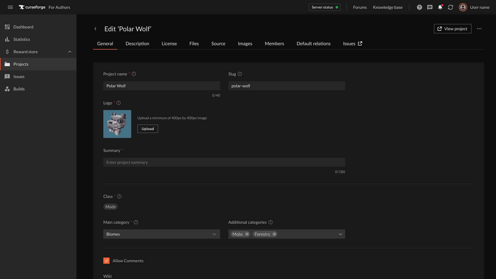 At this point, you can also go to your project on the CurseForge web portal and make additional Mod Detail Edits.