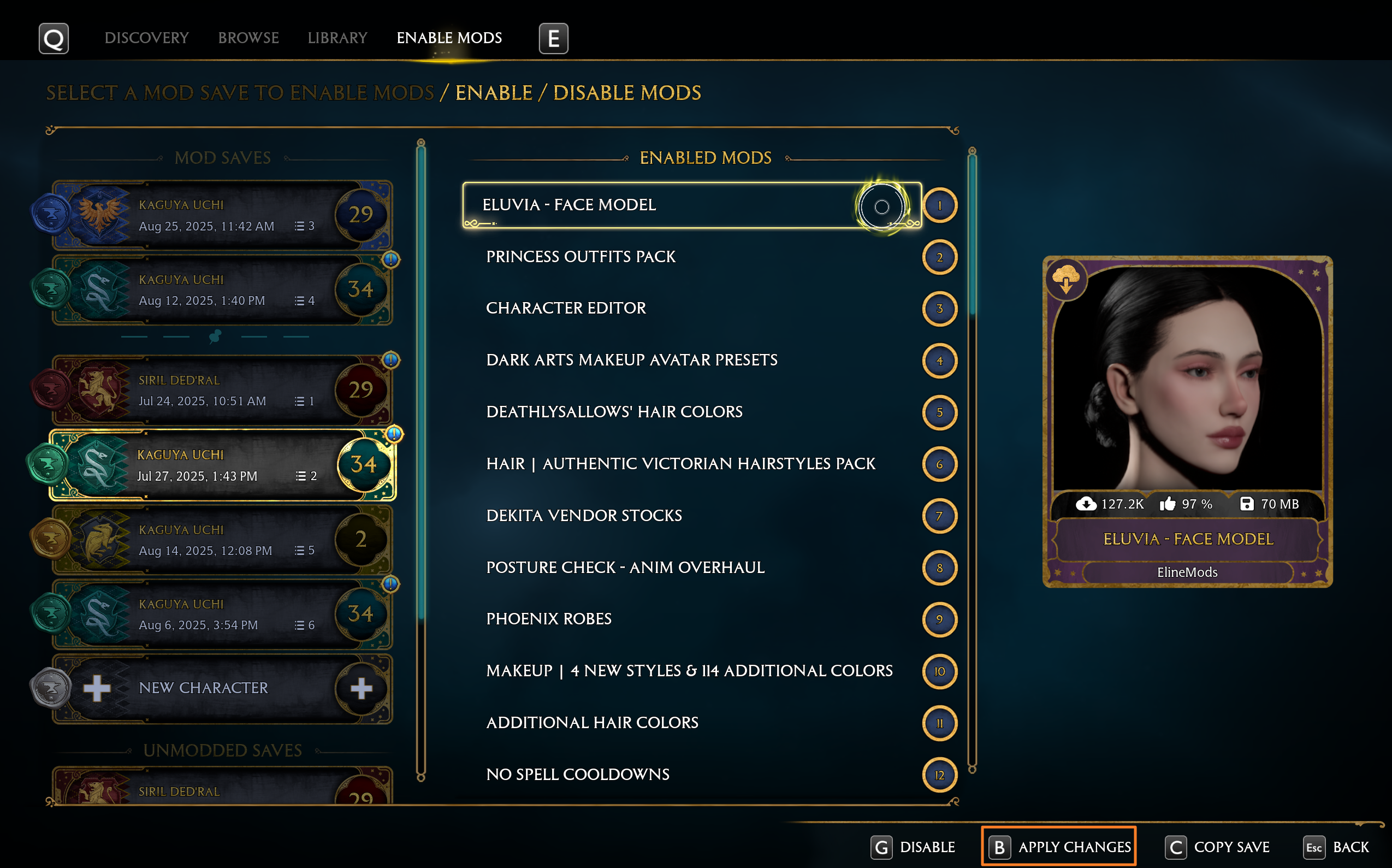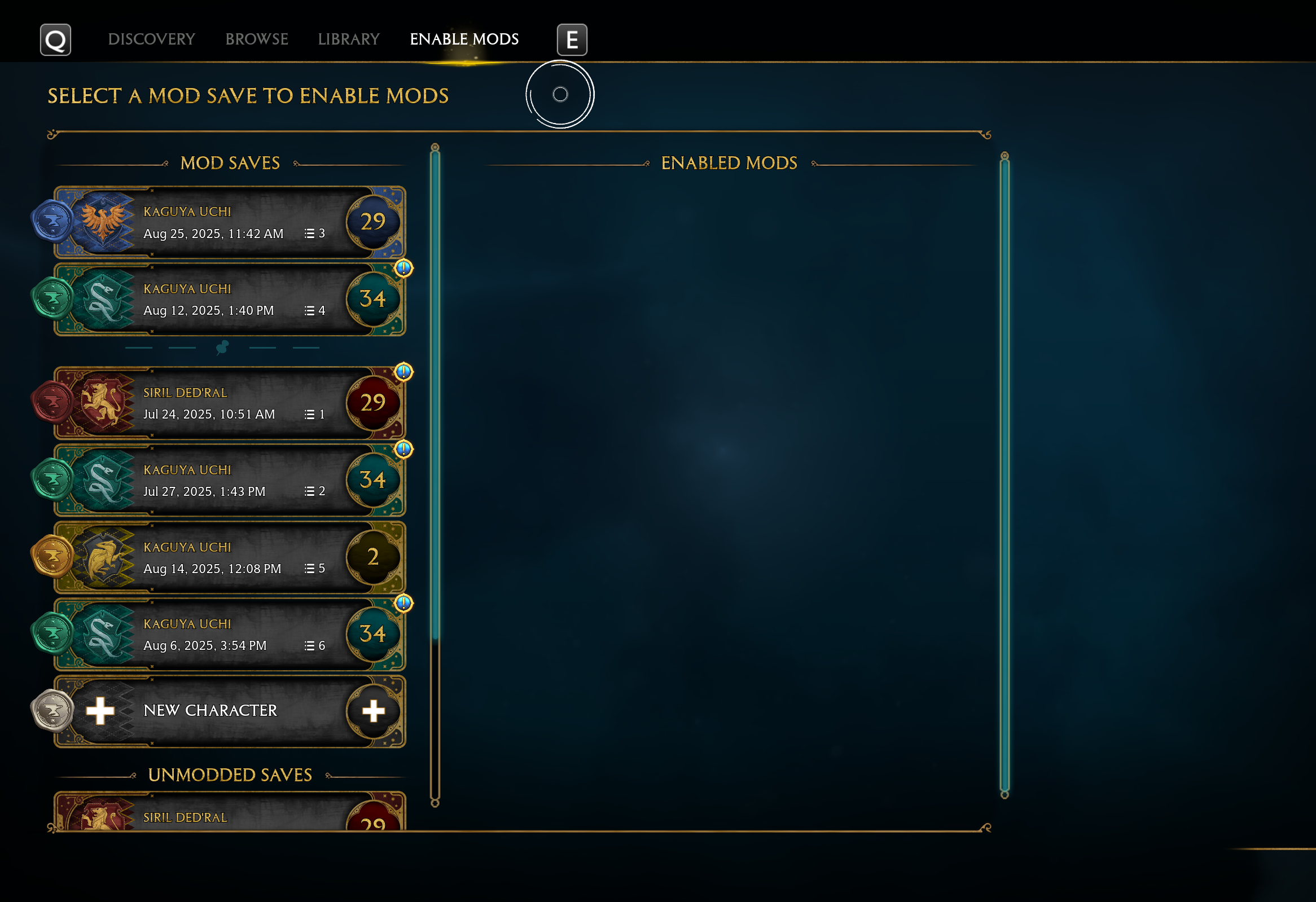 - Enable mod- View all of your modded &unmodded saves, enable your installed mods on the saves you wish to play on: