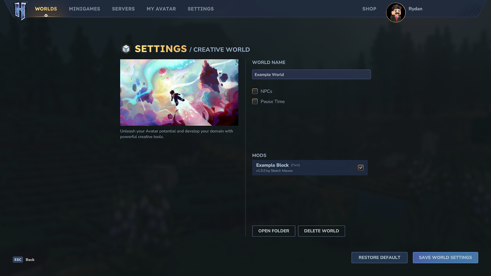 - Visit the “Worlds” tab, and right-click on the world you wish to add it to, then select the toggle on the mod you wish to add