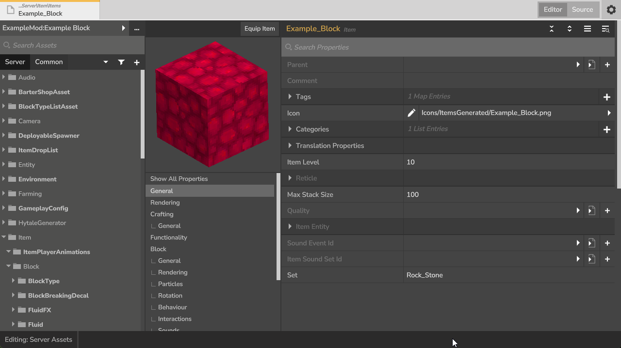 Now that you have the files created, you can edit the properties and details of your block through the Asset Editor!